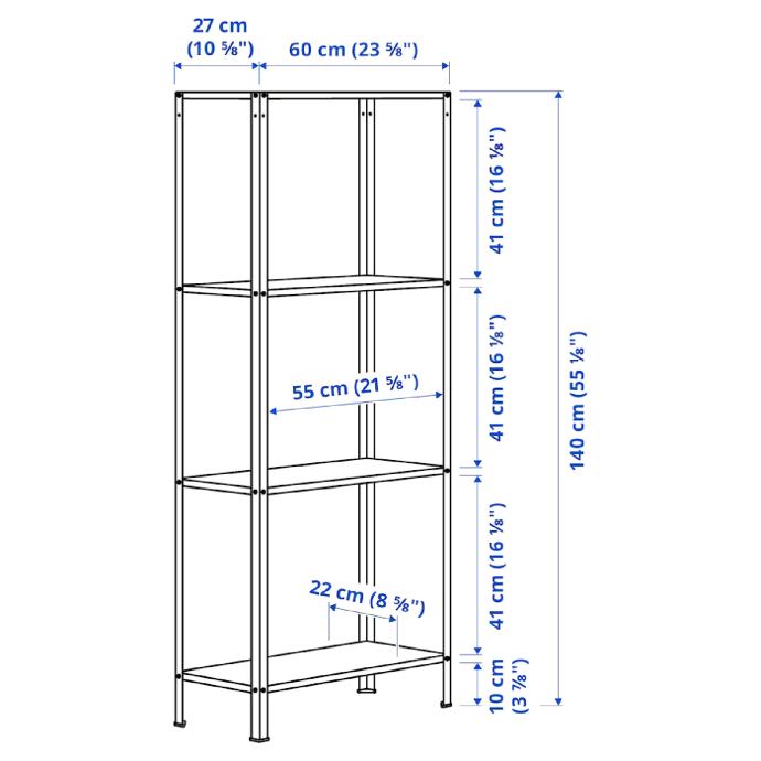 Regal, unutarnji/vanjski, 60x27x140 cm. Očuvan.