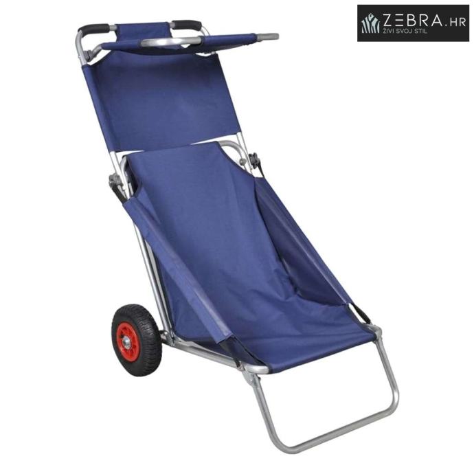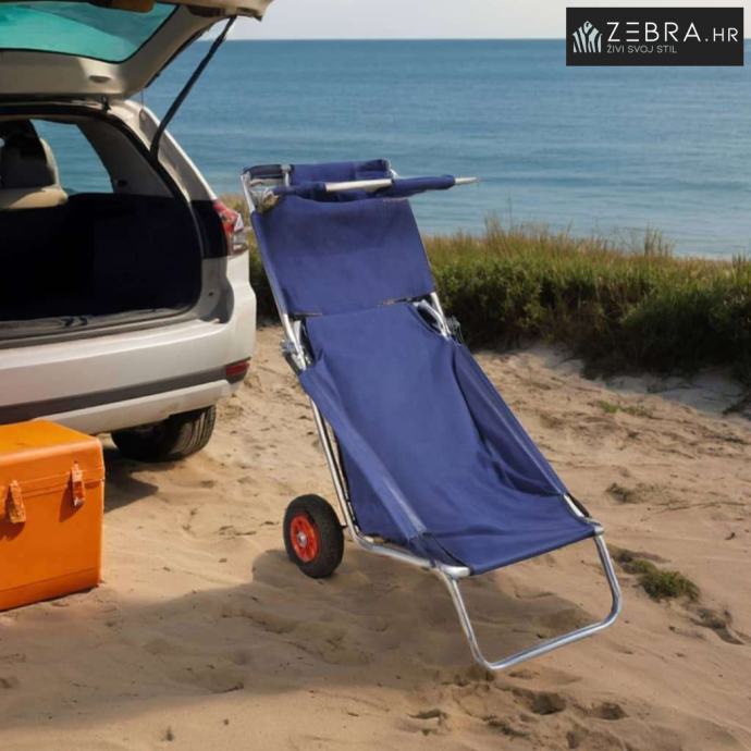 Olakšajte svoj odlazak na plažu: Plava sklopiva kolica s kotačima i funkcijom ležaljke