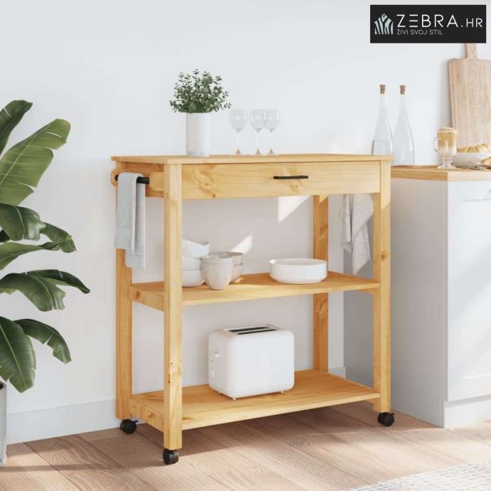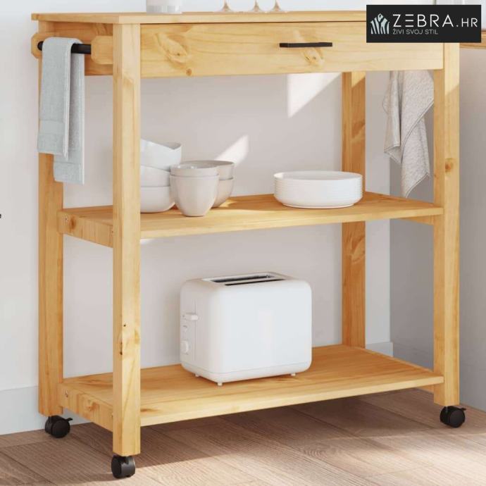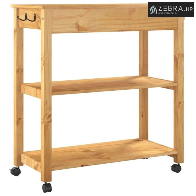 Kuhinjska kolica MONZA 84 x 40 x 88,5 cm od masivne borovine - Smeđa 8