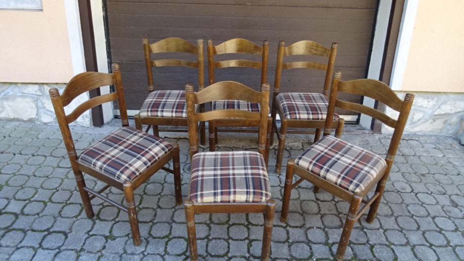 Prodajem 6 masivnih stolica sa slike po vrlo povoljnoj cijeni. Izrađene od punog drveta, vrlo su čvrste i robusne te nisu tako loše kvalitete kao današnje jeftinije verzije, gdje se sve odmah pomiče i dobiva prozračnost, poznavatelji će odmah znati o čemu govore! Iz 80-ih su godina prošlog stoljeća, proizvedene u bivšoj Jugoslaviji i opremljene i proizvedene JUS standardom - kontrolom kvalitete, a ne kao današnji proizvodi koji se masovno prevoze iz Kine kontejnerima i nitko ne odgovara za kvalitetu proizvoda. Prodaju se samo u setu, cijena za stolicu je samo 17 eura.