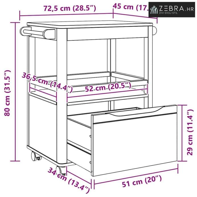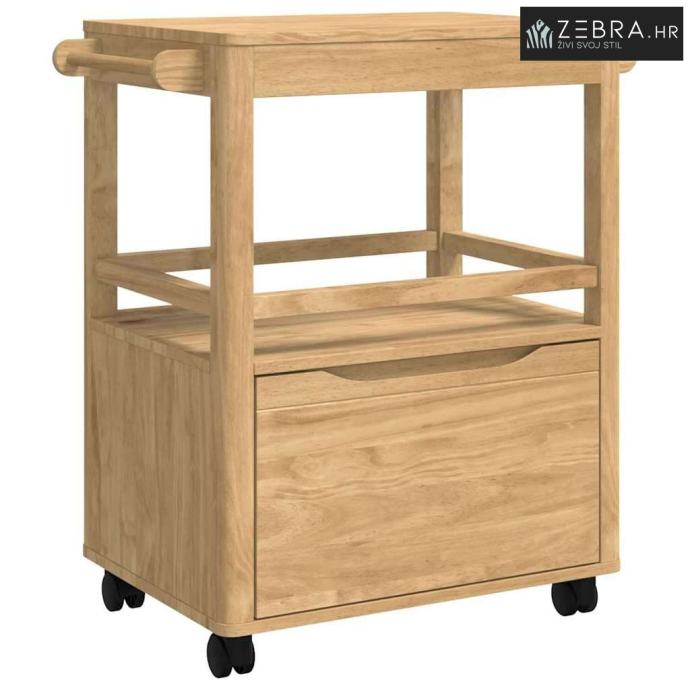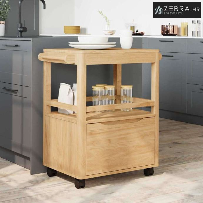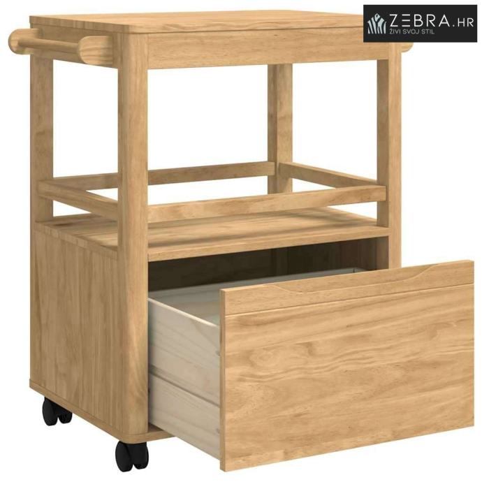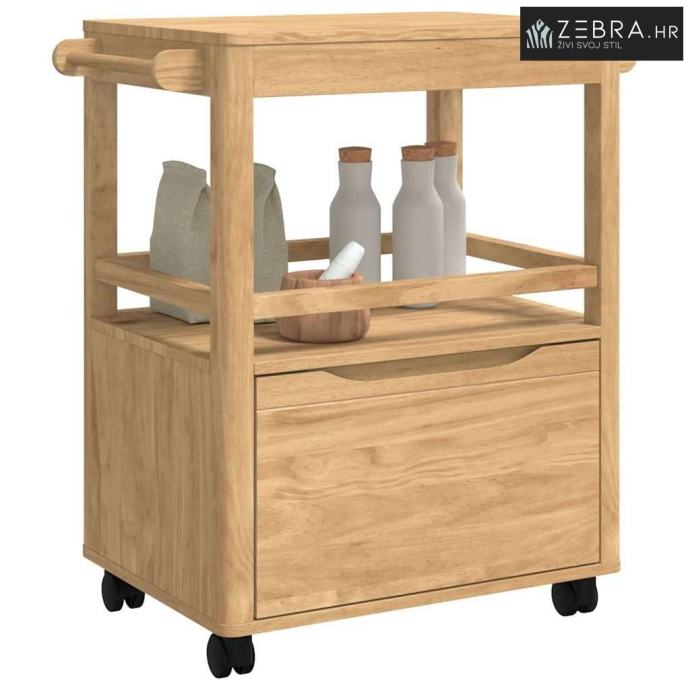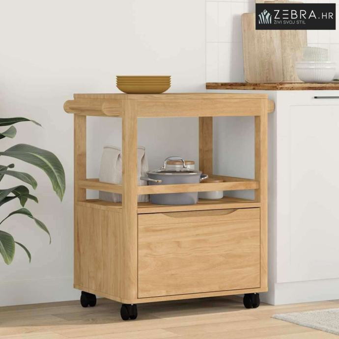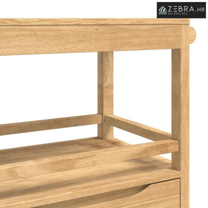 Izdržljiva konstrukcija od borovine Ova kuhinjska kolica su napravljena od masivne borovine, što im daje elegantan oblik i stabilnost. Njihova prirodna ljepota i dugovječnost obogaćuju svaki kuhinjski prostor svojom toplinom i šarmom. Masivna borovina osigurava da kolica izdrže svakodnevnu upotrebu, a zadržavaju i svoj izgled i funkcionalnost tijekom vremena.