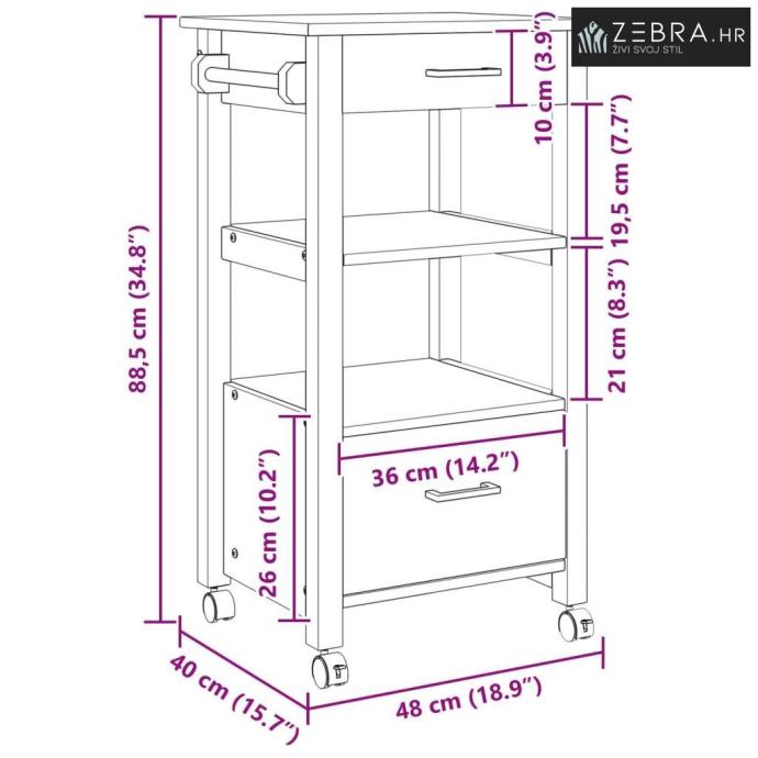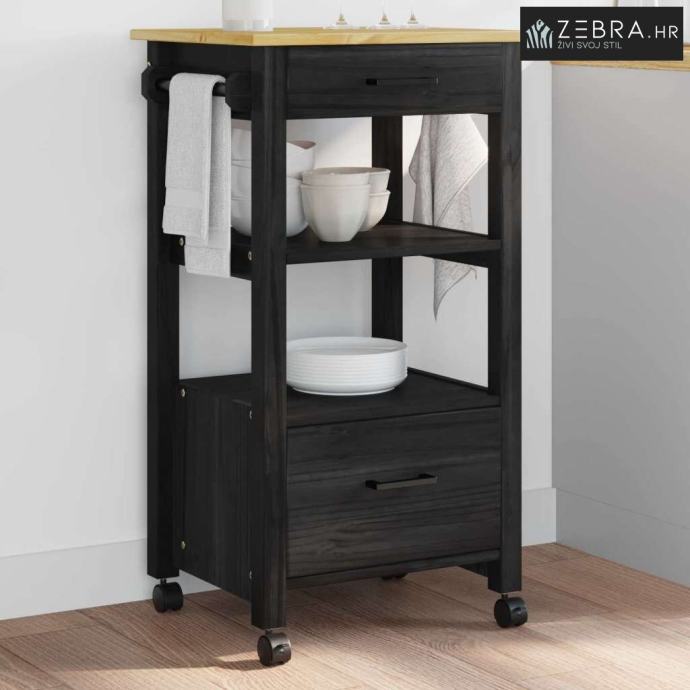 Njega i održavanje: Da bi kolica bila u vrhunskom stanju, redovito ih briši vlažnom krpom kako bi uklonio mrlje ili prolijevanja. Izbjegavaj jake kemikalije kako bi sačuvao njihov voskani završetak, osiguravajući dugotrajnu upotrebu i privlačnost. Održavanje ovih kolica zahtijeva minimalan trud, čineći ih praktičnim izborom za svaku kuhinju.