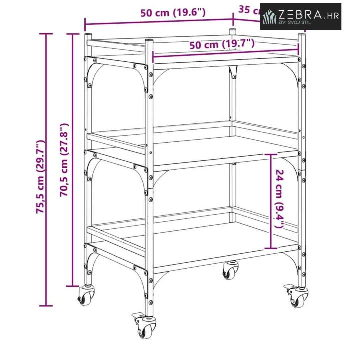 Karakteristike: Pametan dizajn s mobilnošću na umu, ova kolica imaju kotače koji se zaključavaju kada su na svom mjestu. Njihov industrialni stil unosi dašak urbanog šika u vaš dom, koristeći materijale koji podsjećaju na industrijske prostore, uz zadržavanje funkcionalnosti.
