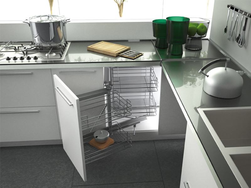 Kutna izvlačna košara za donji kuhinjski element širine 900 mm.