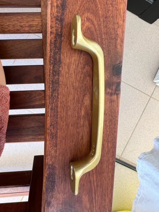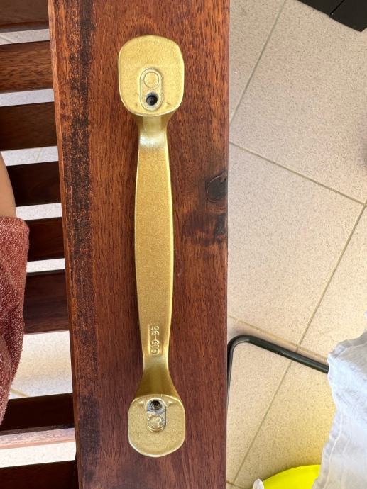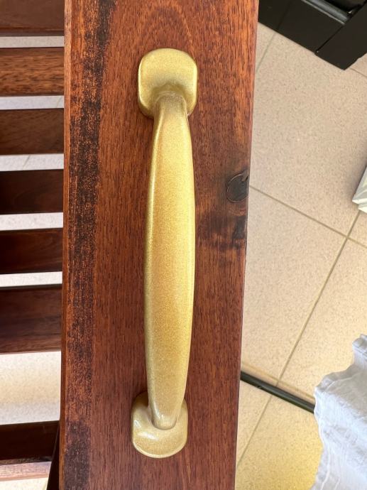 Prodajem ručkice, 10 komada, doslovno nove. Kupili smo ih na kraju prošlog ljeta za kuhinju koju smo ovog proljeća zamijenili novom. 13,2 cm ukupna dužina, a od šarafa do šarafa 9,5 cm.