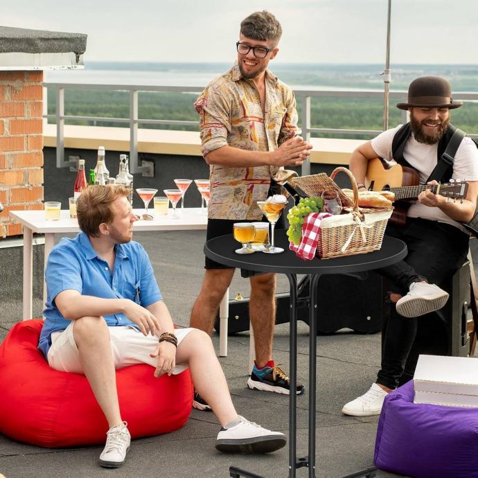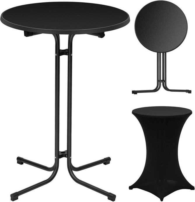 Ovaj sklopivi barski stol s navlakom vrlo je funkcionalan i može se koristiti kao bistro stol, barski stol, pomoćni stol ili manji blagovaonski stol. Zahvaljujući uključivoj rastezljivoj navlaci, idealan je i za vanjsku upotrebu – na vrtu, terasi, zabavama, koktelima, vjenčanjima ili rođendanima.