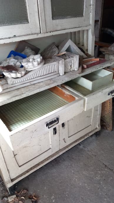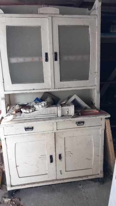 Star barem 130 godina od moje bake a ja imam 70 godina. Namjeravao sam ga obnoviti i promijeniti okove jer sada ima veliki izbor starinskih patiniranih na internetu i jeftino ali mislim da je malo kasno za mene da ga obnavljam !!!! Trebalo bi skinuti stare slojeve boja I ponovo urediti. Što se tiče samog drveta koliko vidim je uredu. Ima gornji dio ormara i doljnji dio koji se samo stavi jedan na drugi. Pogodno i za crvenu mramornu ploču 15- 20mm takove se sjećam da je bila ( Boja terakote)Cijena je staklenca 220€.