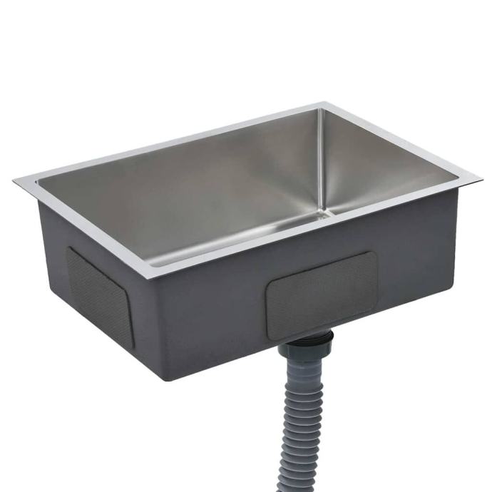 Kombinirajući najbolje u funkcionalnosti i dizajnu, ovaj sudoper s jednom kadicom izrađen je od visokokvalitetnog, ručno rađenog nehrđajućeg čelika u bezolovnoj boji protiv kondenzacije, otpornoj na plijesan i koroziju. Zvučno je izoliran podlogama za smanjenje zvuka. Uz to, kadica s jedinstvenim odvodima u obliku slova X pospješuje brzi protok, sprječavajući ostajanje vode na dnu sudopera.