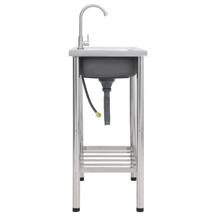 Napravljen od nehrđajućeg čelika, ovaj vrtni sudoper otporan je na ogrebotine i udare, vrlo izdržljiv i prikladan za kontakt s hranom. Također odbija prljavštinu i otporan je na mrlje, stoga se lako čisti. Izuzetno duboka kadica ima dovoljno prostora za pranje velikih lonaca i posuda. Ploča za cijeđenje vrlo je korisna prilikom ručnog pranja posuđa, ali i kao dodatno mjesto za rezanje povrća. Uz to, sudoper se lako prenosi.