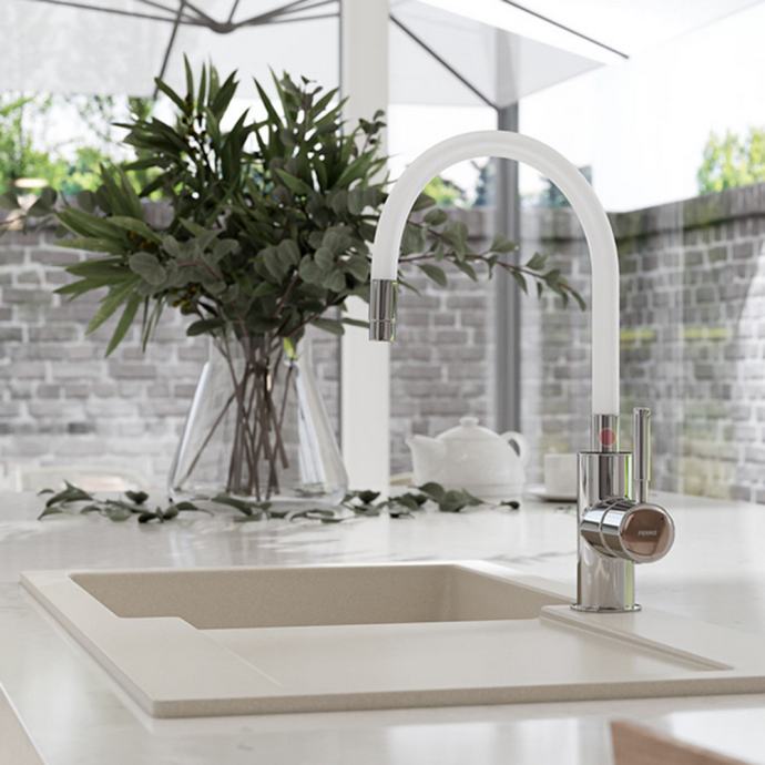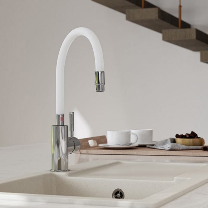Slavina s gibljivom izljevnom cijevi je odličan izbor za svaku kuhinju zahvaljujući svom modernom dizajnu, eleganciji i kvaliteti.