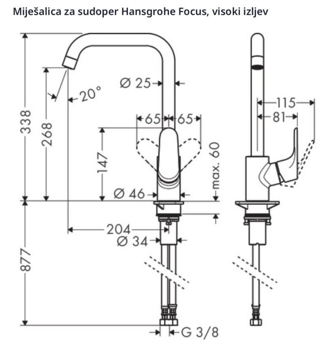 Hansgrohe Focus kuhinjska pipa za sudoper, kao nova