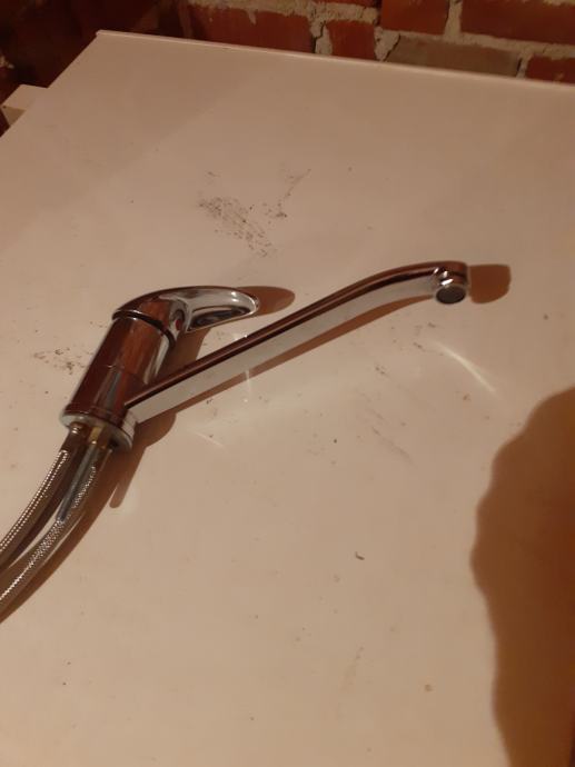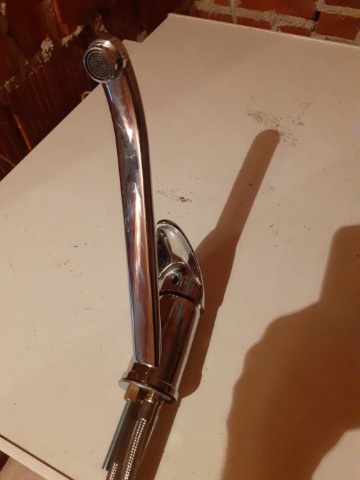 Za sudoper, stojeća, jednoručna, krom ,sa tri cijevi, ispravna, vrlo malo korištena.