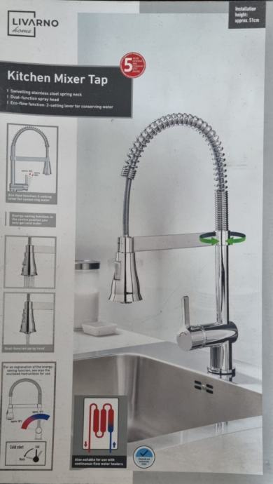 Prodajem novu kuhinjsku slavinu sa fleksibilnim crijevom i magnetnim držačem. Dvije vrste mlaza - mlaz i tuš.