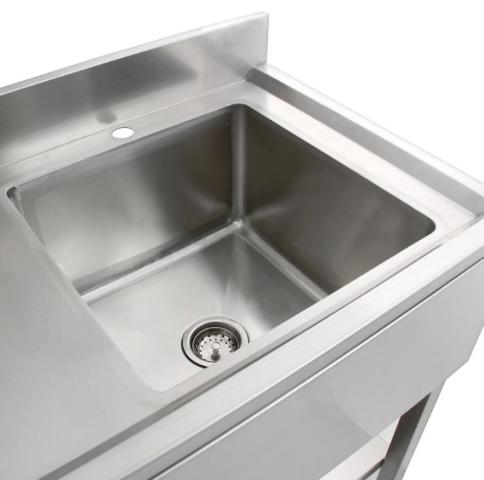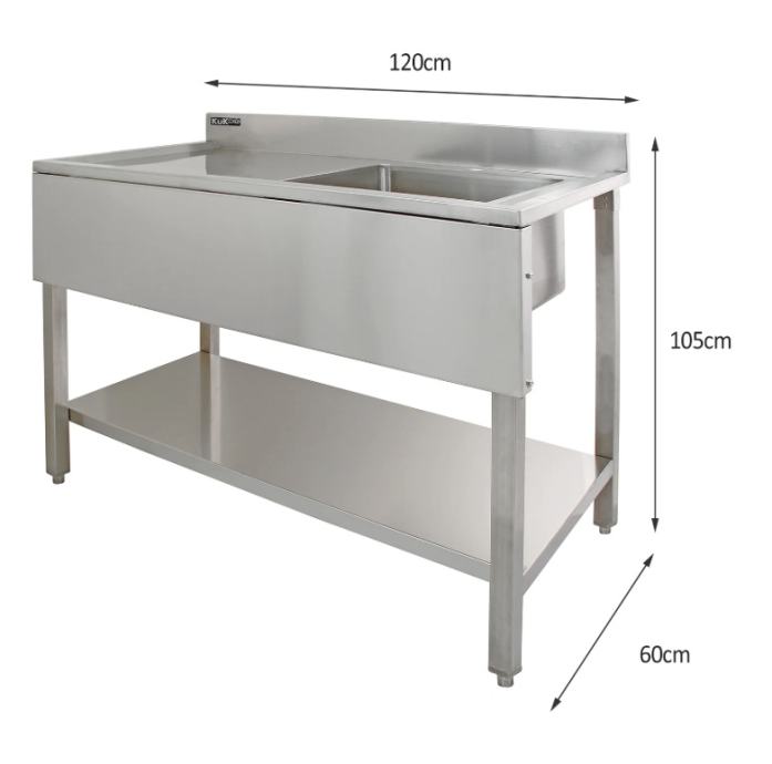 Budući da se tako lako čiste, sudoperi od nehrđajućeg čelika savršeni su za svaku vrstu kuhinje, posebno za prometnu komercijalnu. Osim toga, povišenje visine 120 mm stvara glatki rub koji sprječava zadržavanje prljavštine i hrane iza sudopera.