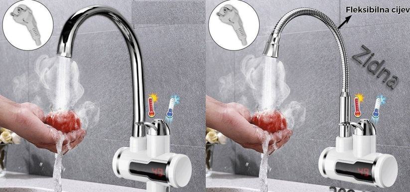 Slavina sa ugrađenim grijačem za brzo zagrijavanje vode koja će u nekoliko trenutaka zagrijati vodu u neograničenim količinama!