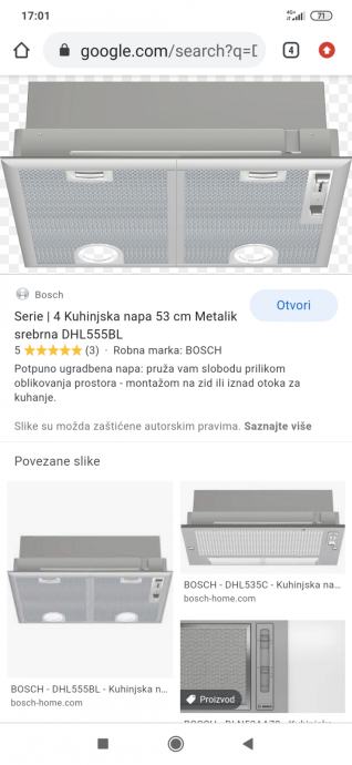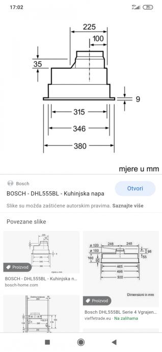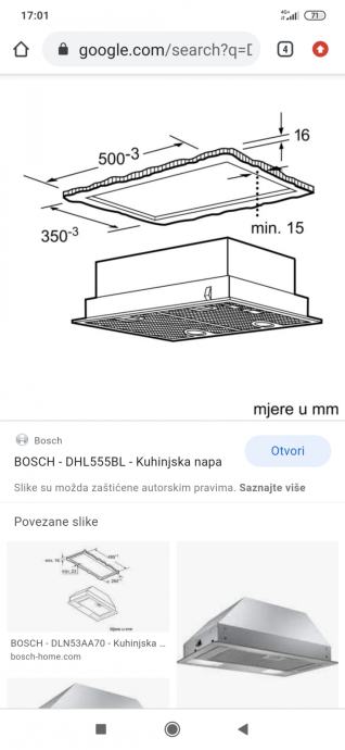 Ugradbena napa za ugradnju iznad ploče za kuhanje
