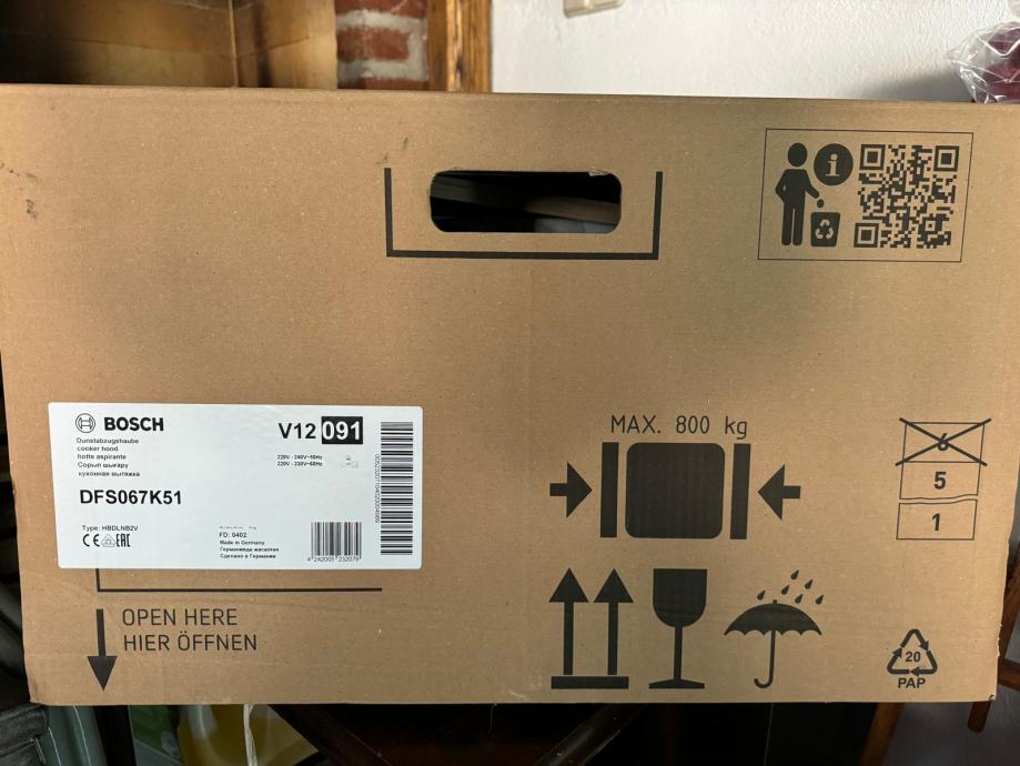 Prodajem novu i nekorištenu Bosch napu DFS067K51. Napa je kupljena u Njemačkoj u Ožujku ove godine. Zbog greške u planiranju kuhinje ju nismo mogli iskoristit. Račun i garancija vrijede u Hrvatskoj, provjereno kod Boscha.