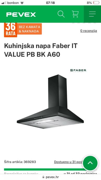Prodajem potpuno novu Faber napu iz Pevexa. Redovna cijena 146 eura. Prodajem ju za 110 eura.