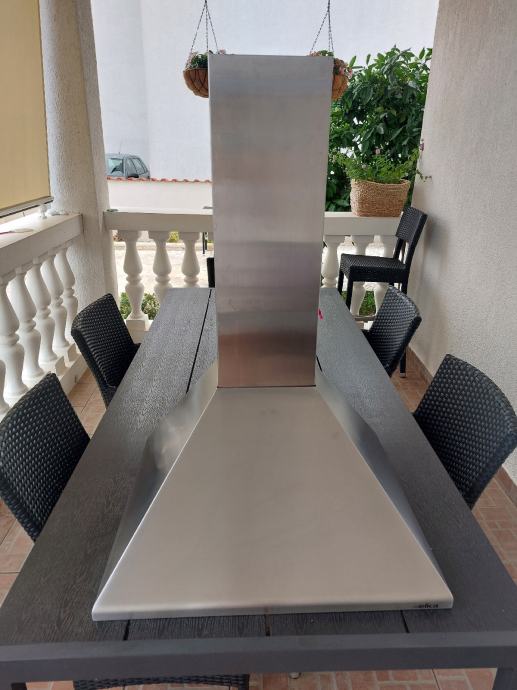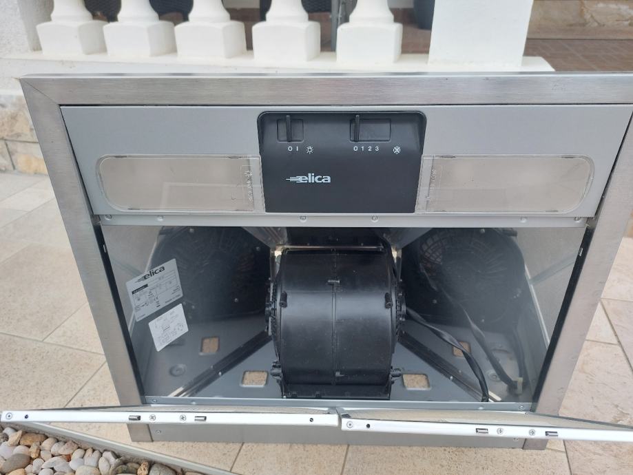 Prodajemo kuhinjsku napu, proizvođača Elica. Napa je bila postavljena ali nikad korištena jer se kuha stalno u ljetnoj kuhinji. Stanje odlično što se vidi po fotografijama. Nastavak nape je fleksibilan, visina nape se prilagođava visini stropa.