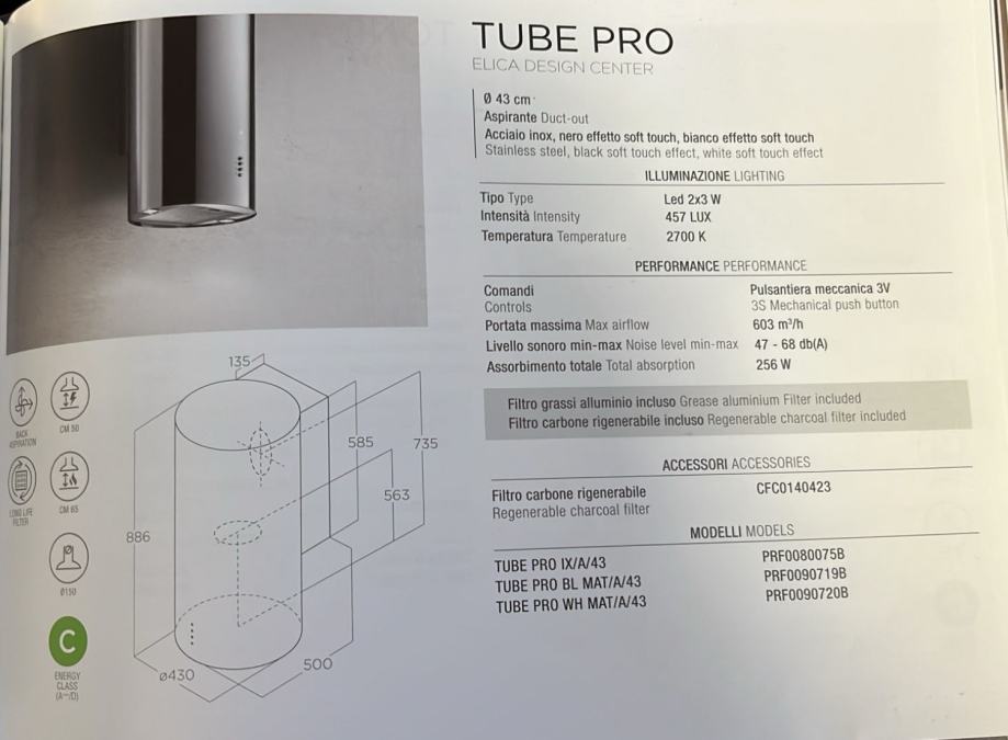 Nova kuhinjska cilindrična napa Elica Tube Pro WH/A/43 moderna napa, cilindričnog oblika.