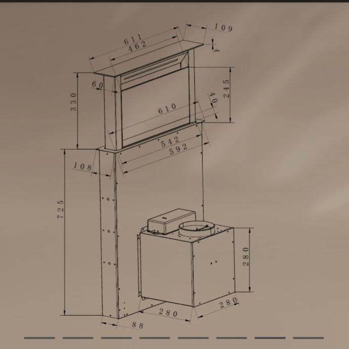 Dimenzije nape: cca 60 x 73 x 9 cm (Š x V x D)