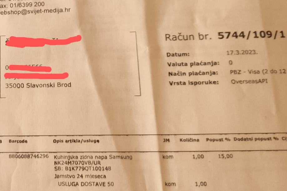 Plaćanje : po primitku paketa, znači samo pouzećem !