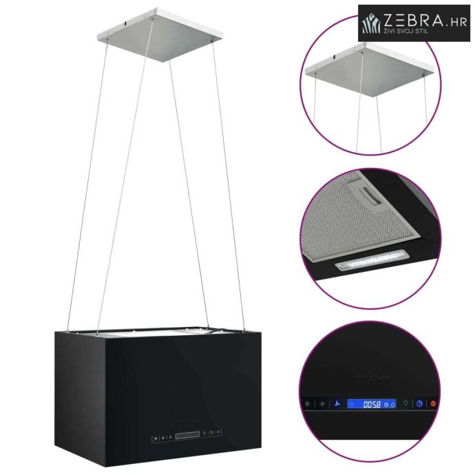 Naša snažna otočna napa koja ne proizvodi puno buke i slobodno visi idealna je za učinkovito odvlačenje dima, masti, vlage, pa čak i topline iz vaše kuhinje. Njeno elegantno kućište od čelika obloženog prahom dat će vašoj kuhinji otmjen i moderan izgled.