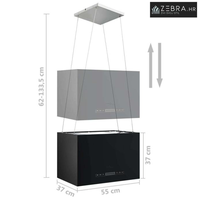 Viseća otočna napa sa senzorom na dodir LCD 55 cm čelična - Crna 55 cm