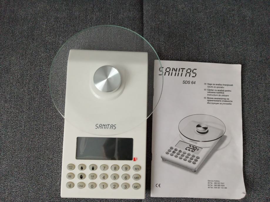 Uz vagu su priložene opširne upute na hrvatskom jeziku,ima funkciju 50 mjesta u memoriji za namirnice koja se mogu individualno dodijeliti,funkciju dodavanja namirnica u neposrednom slijedu,upozorenje pri prekoračenju,prikaz za zamjenu baterije... Dimenzije 22x12 cm+tanjur promjera 16 cm vrlo malo korištena