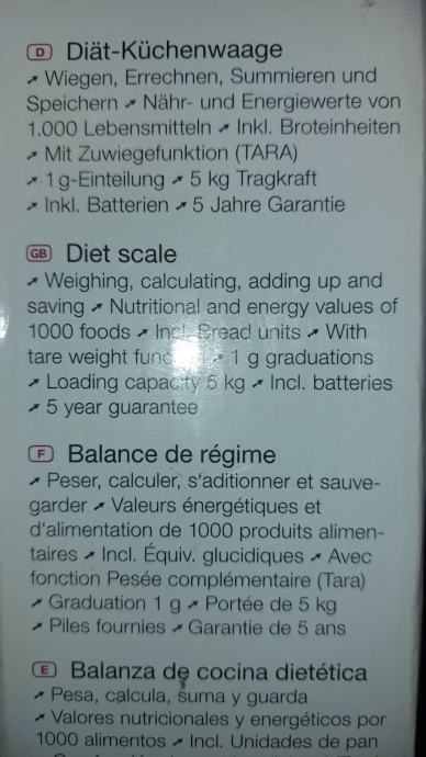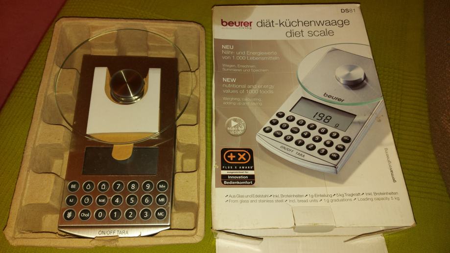 Digitalna vaga Beurer DS81, nikad korištena i prvi put otpakirana samo da bih je fotkao za ovaj oglas. Mjeri do 5kg, kalkulira kalorijsku i nutritivnu vrijednost 1000 različitih namirnica.