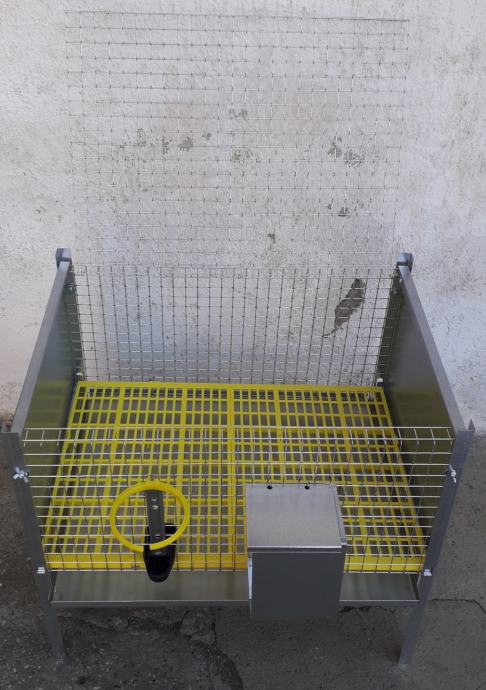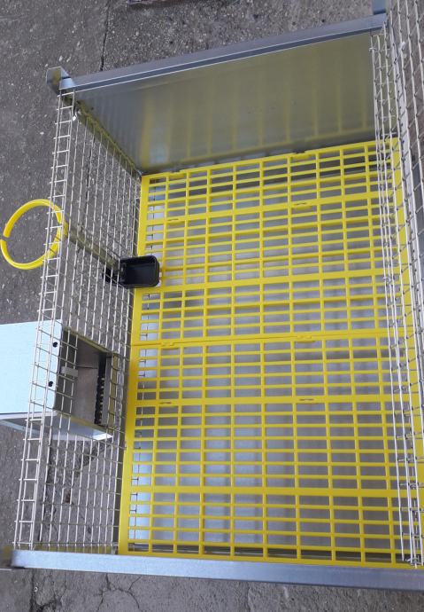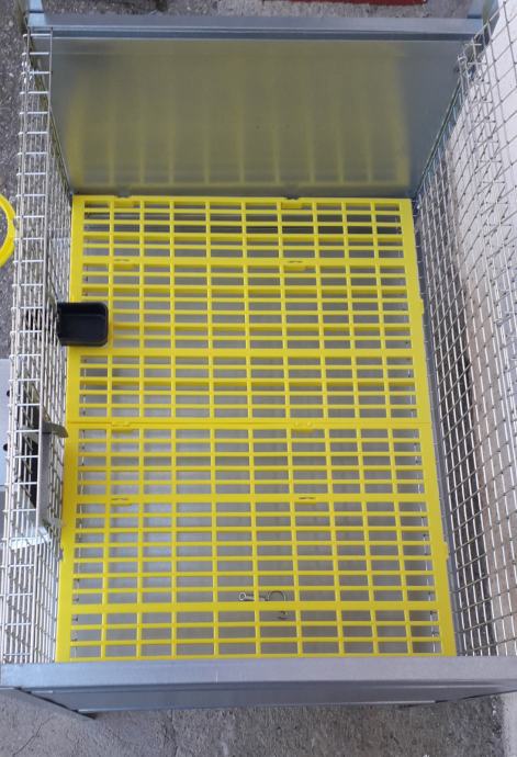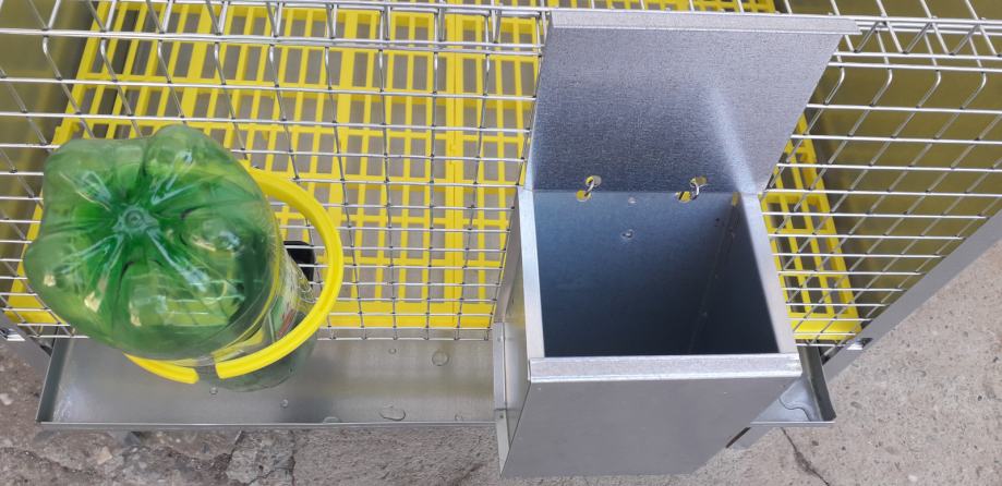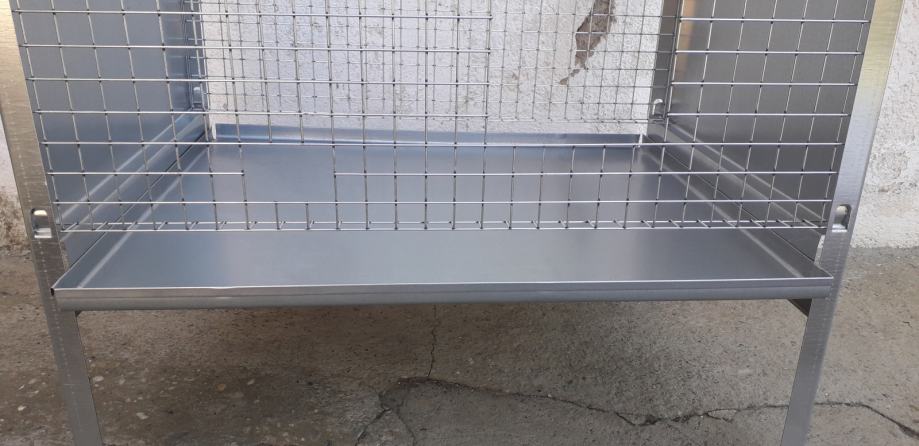 Ispod gajbe se nalazi limena tepsija za izmet koja omogućava lagano čišćenje i održavanje gajbe.