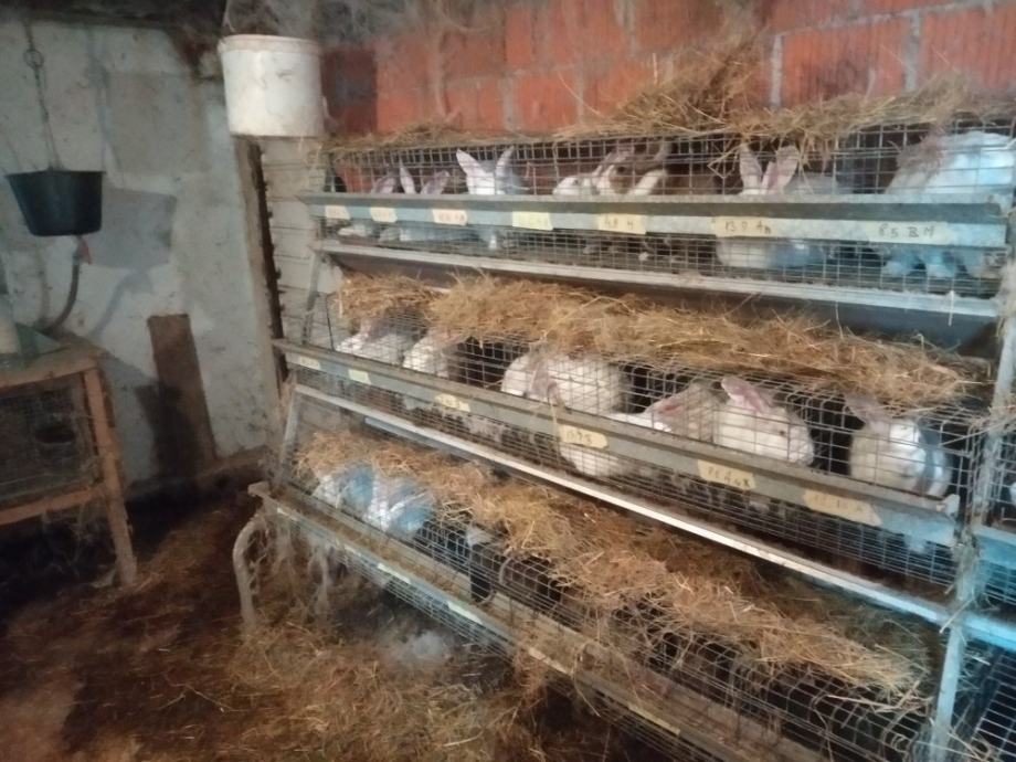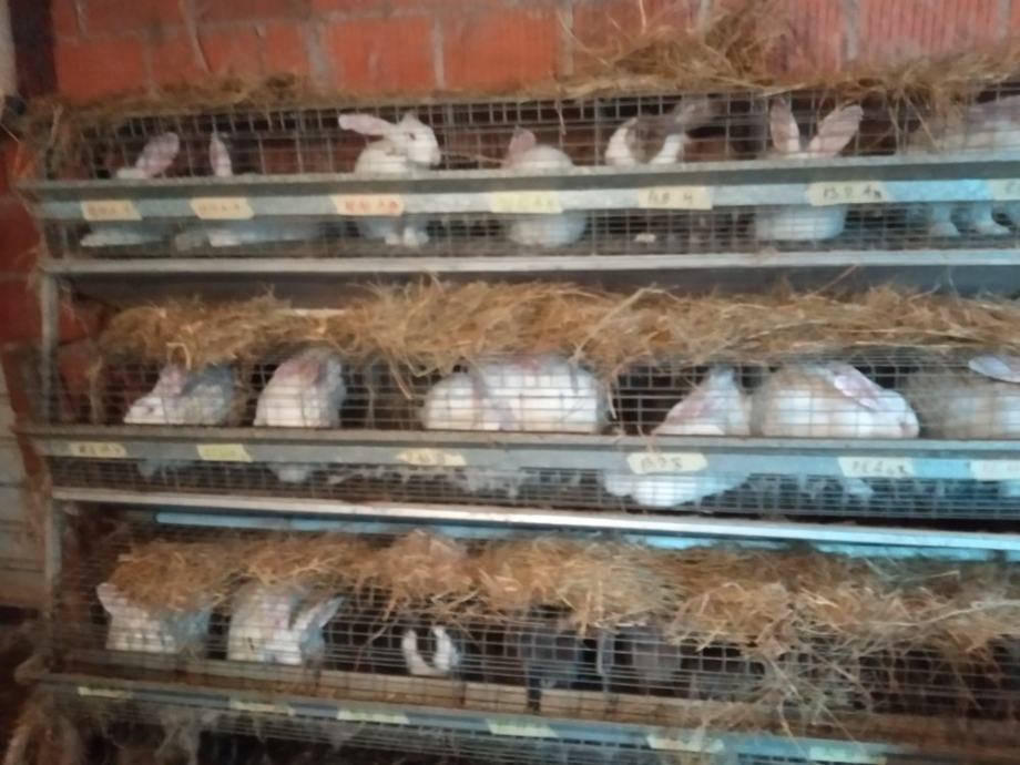 Kavez za ženke sa kotilicama, hranilicama i pojilicama za 5 ženki. Cijena istog je 750 kn . Za komplet 2000 kn. Kavezi su oprani i rastavljeni. Veličina za prijevoz je 1m širine, 2 m dužine i 1m visine,
