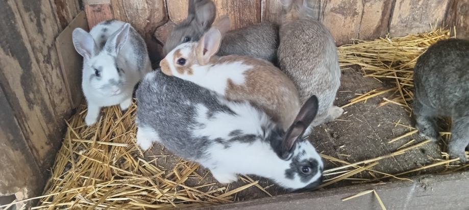 Prodajem kuniće 5 kom, stari 3mjeseca križani su što se vidi na slikama. Nisu još odvojeni muški od ženskih. Cijena 15€/kom, lokacija Piškorevci.