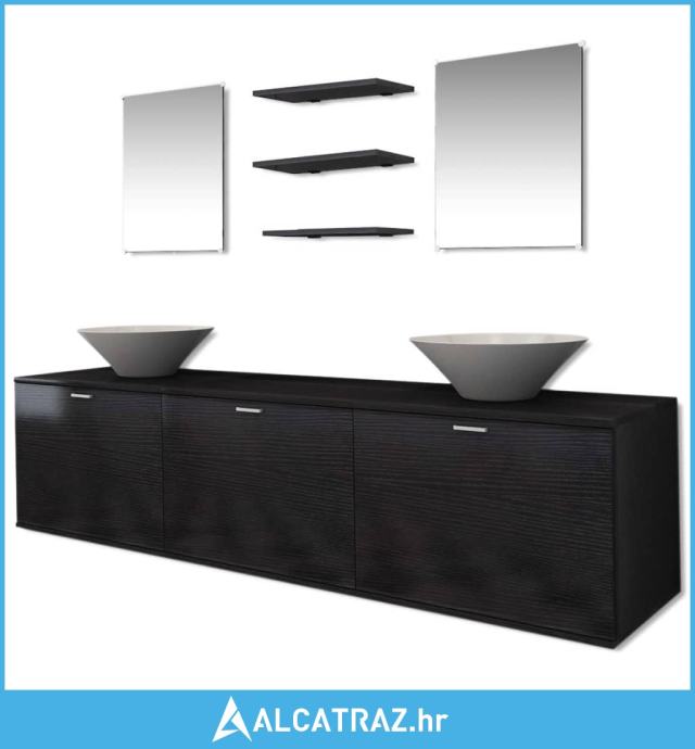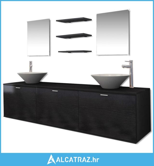 10-dijelni set kupaonskog namještaja, umivaonika i slavine crni - NOVO