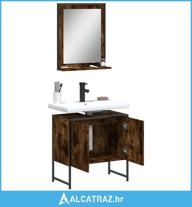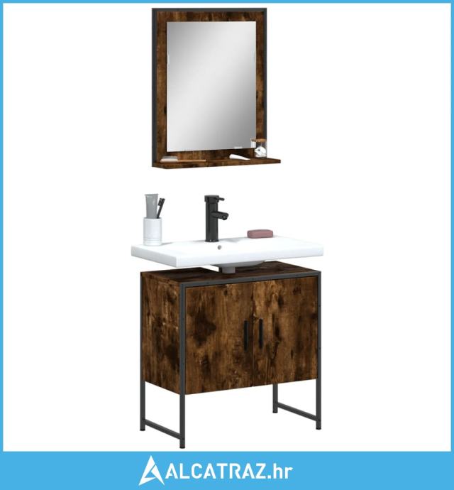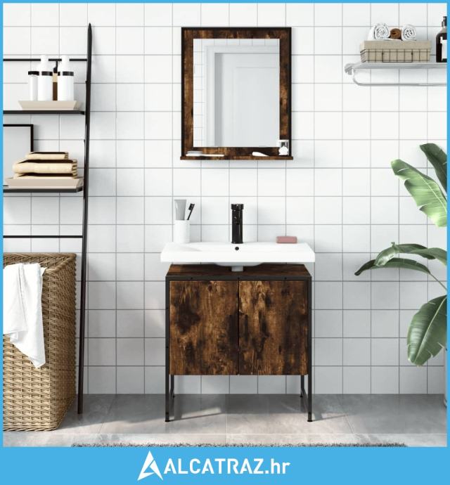 2-dijelni set kupaonskih ormarića boja dimljenog hrasta drveni - NOVO