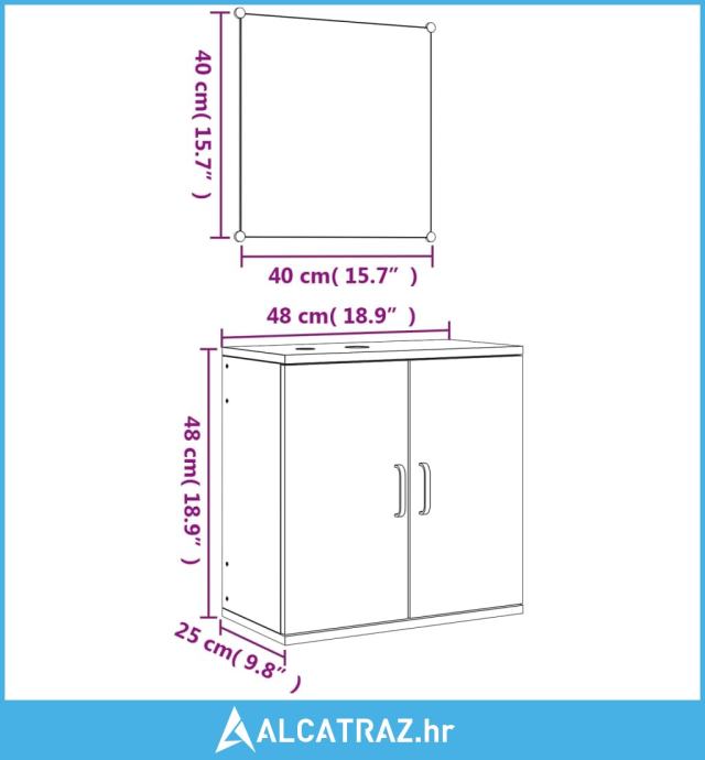 - Dimenzije zidnog ormarića za umivaonik: 48 x 25 x 48 cm (D x Š x V)