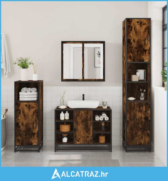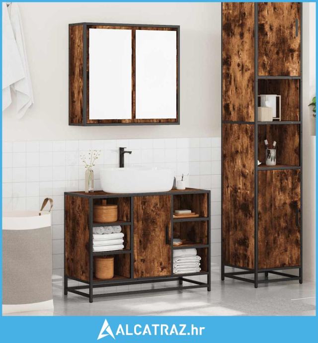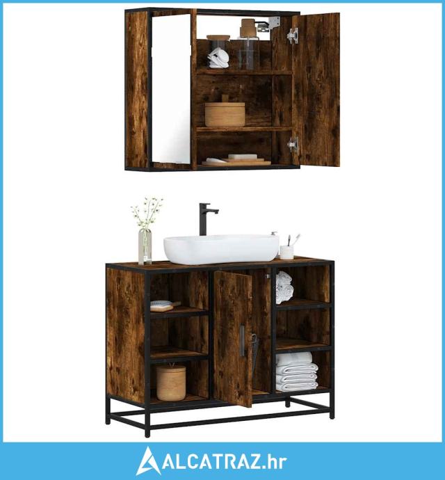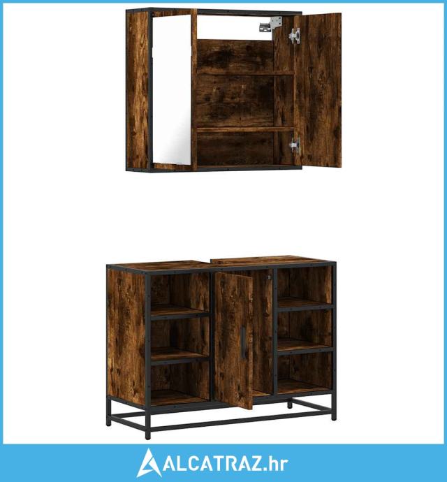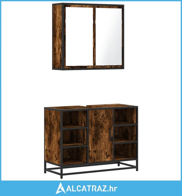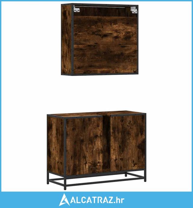 2-dijelni set kupaonskog namještaja dimljena boja hrasta drveni - NOVO
