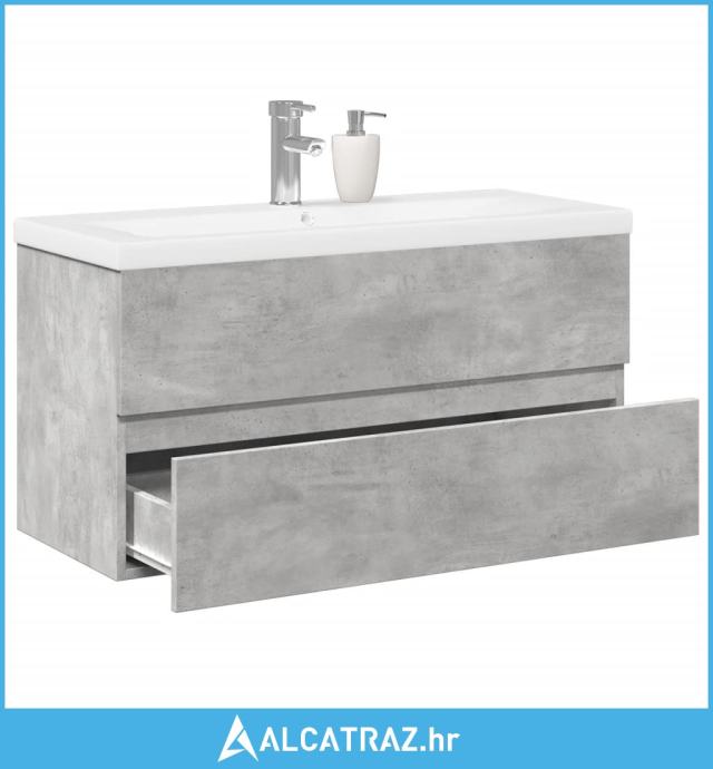 2-dijelni set kupaonskog namještaja siva boja betona drveni - NOVO