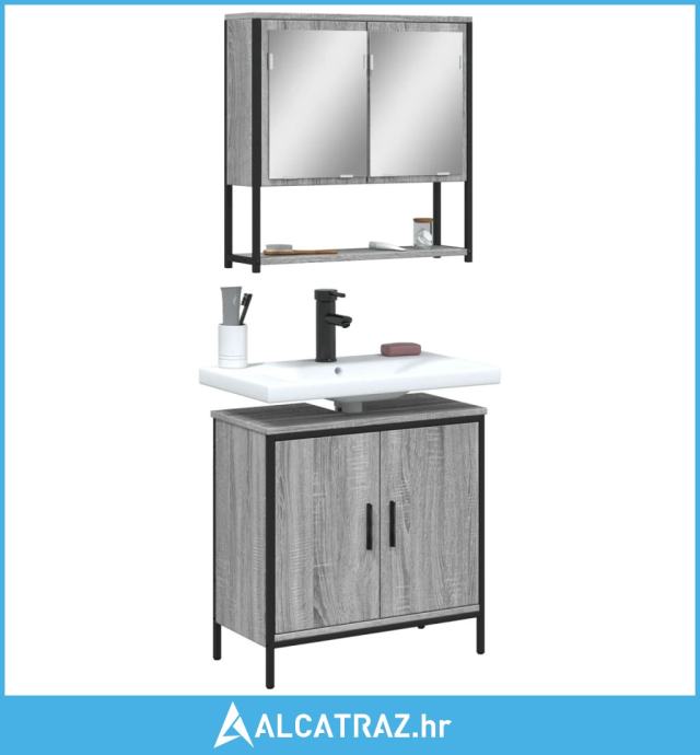 2-dijelni set kupaonskog namještaja siva boja hrasta drveni - NOVO