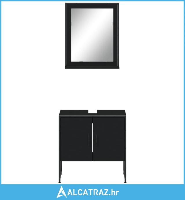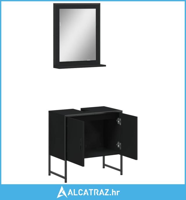 2-dijelni set kupaonskog ormarića crni od konstruiranog drva - NOVO