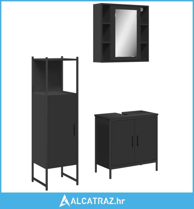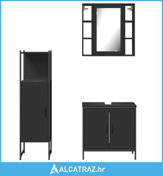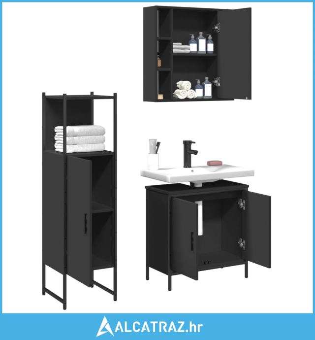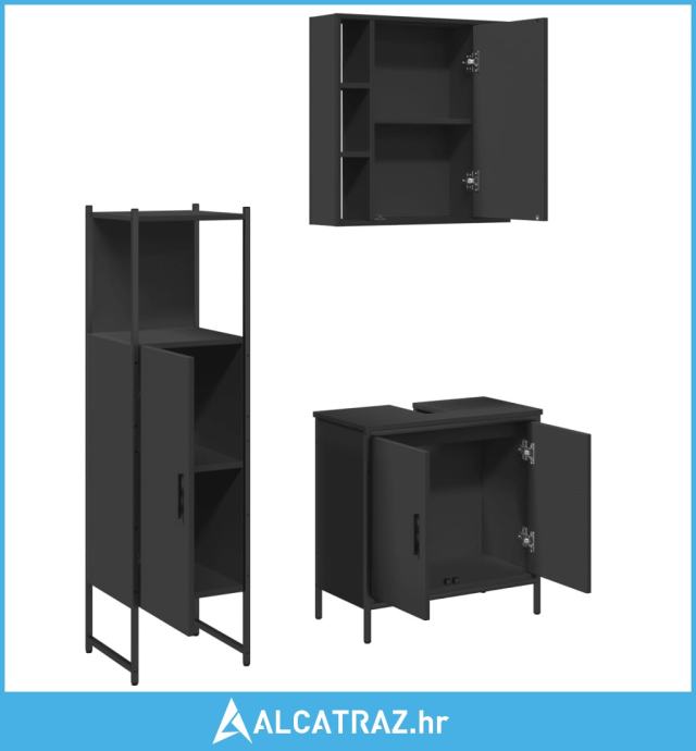 3-dijelni set kupaonskih ormarića crni od konstruiranog drva - NOVO
