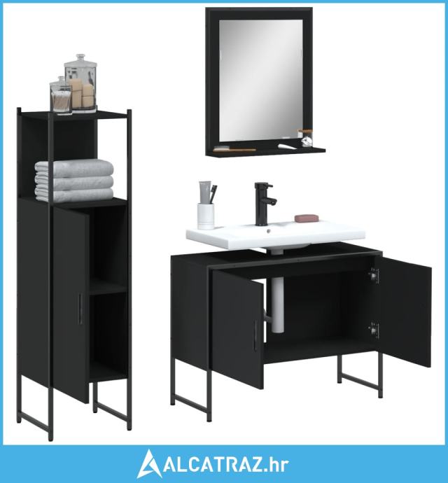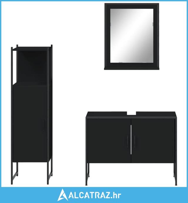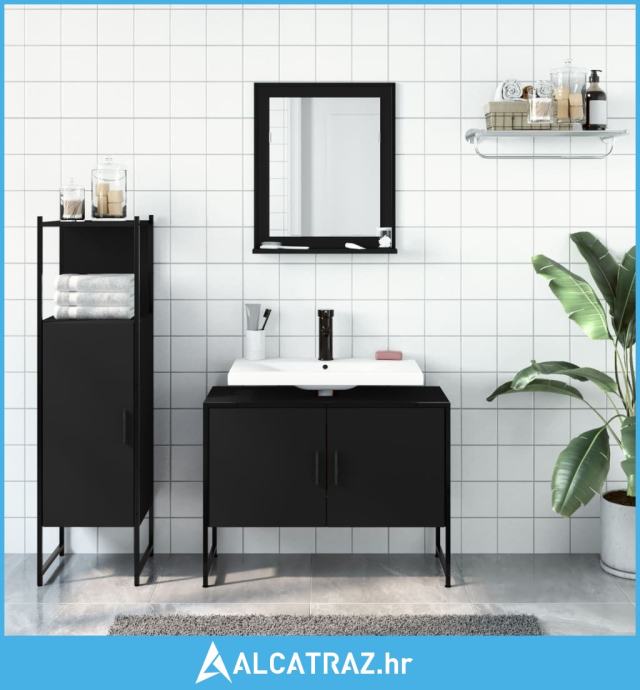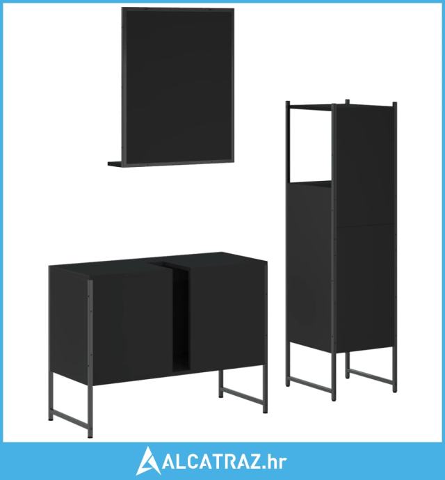 3-dijelni set kupaonskih ormarića crni od konstruiranog drva - NOVO