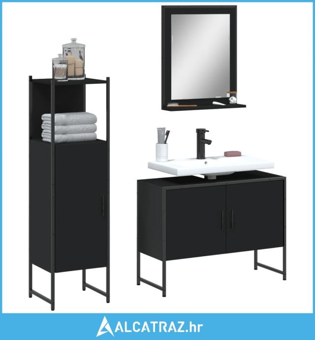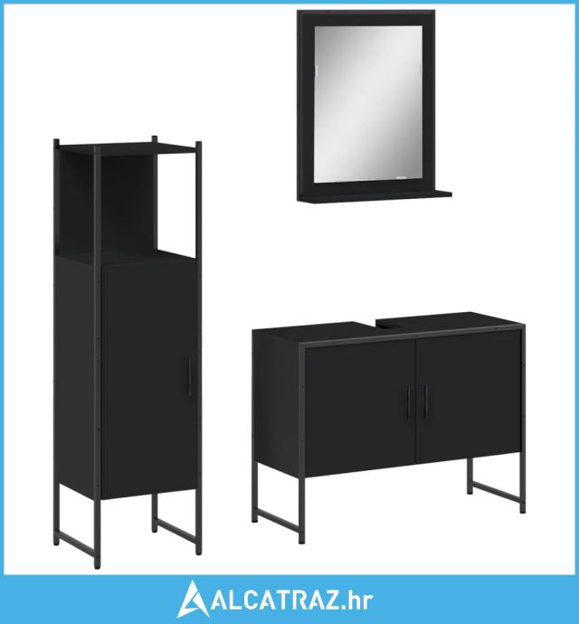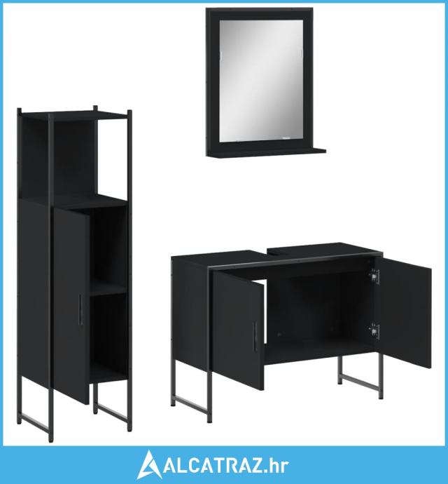 3-dijelni set kupaonskih ormarića crni od konstruiranog drva - NOVO