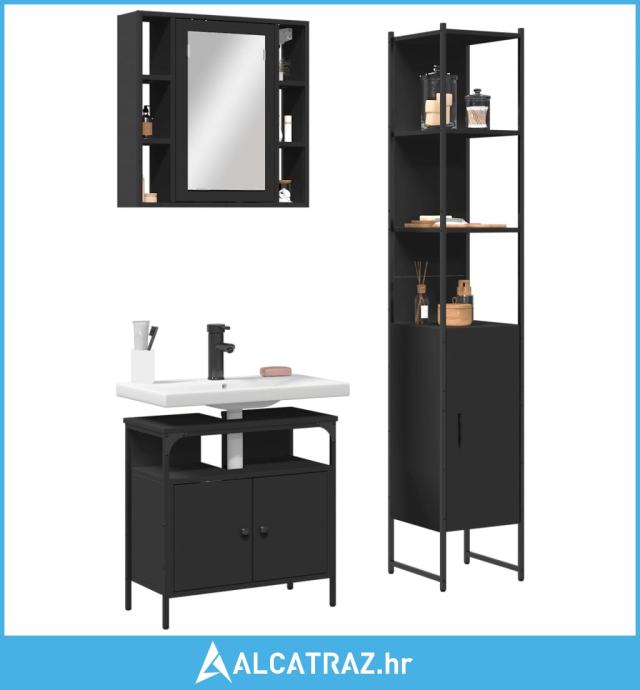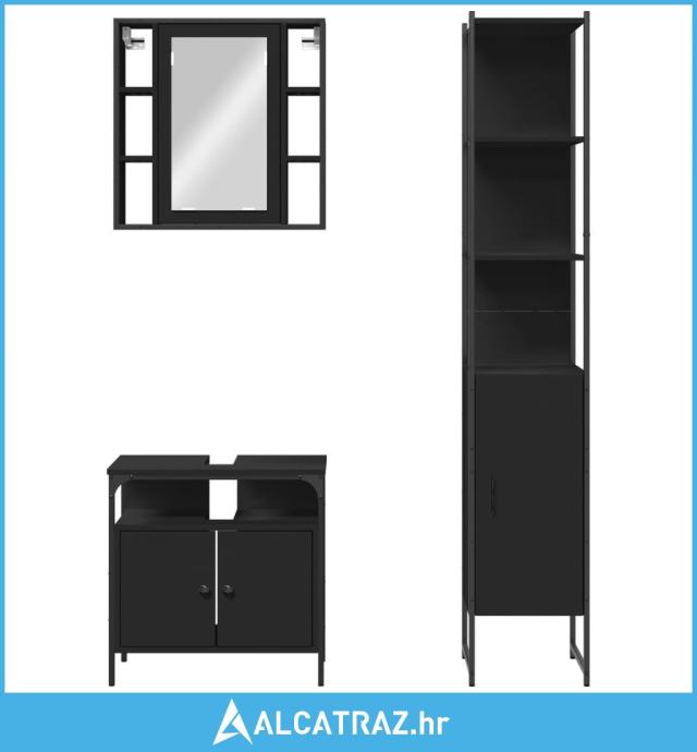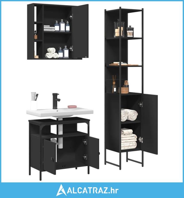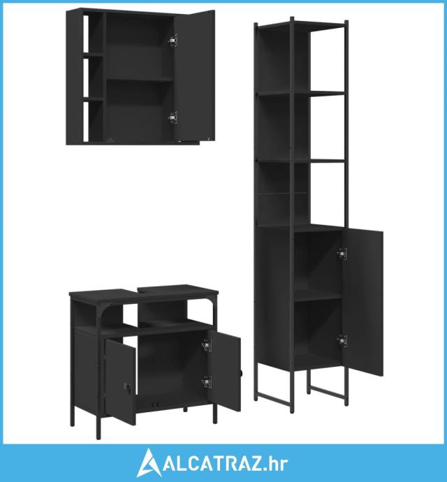3-dijelni set kupaonskih ormarića crni od konstruiranog drva - NOVO