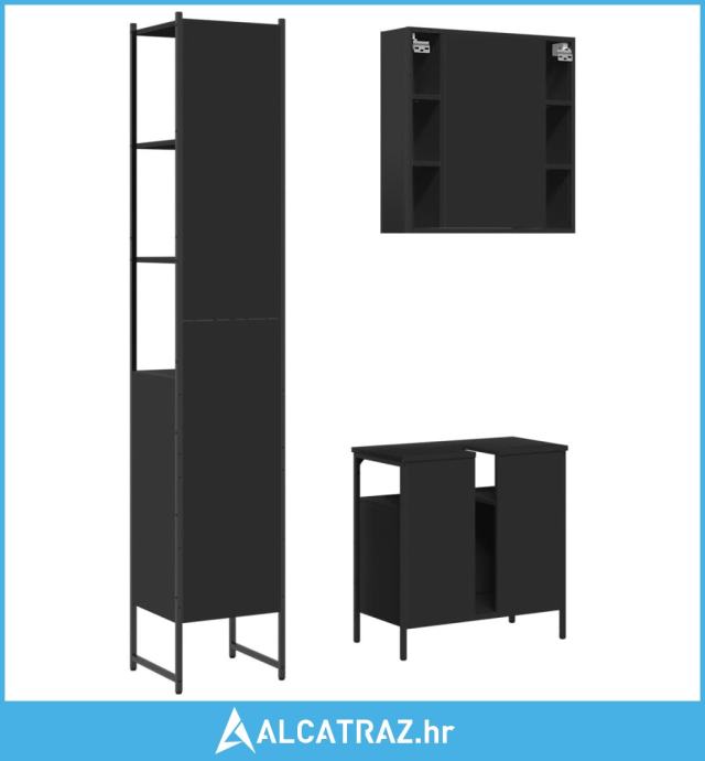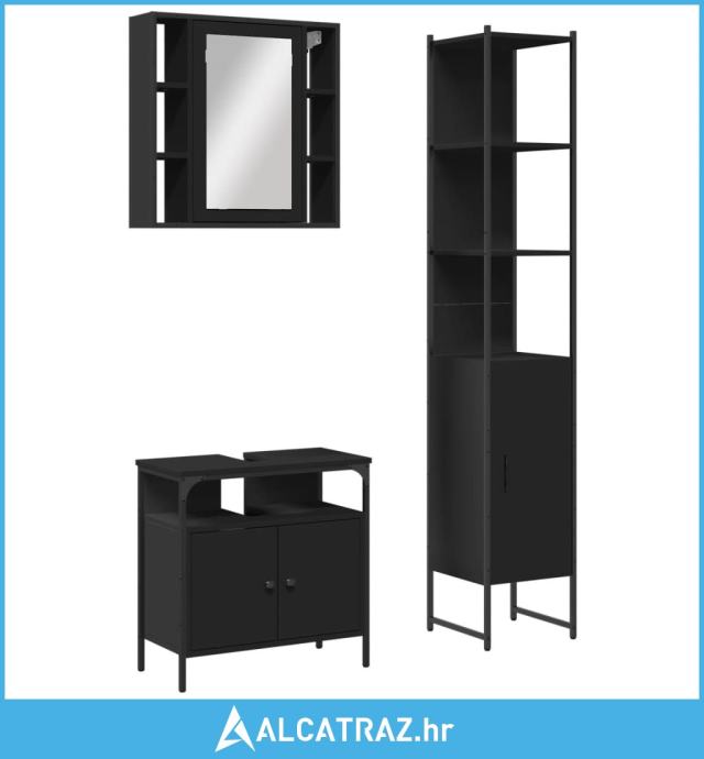 3-dijelni set kupaonskih ormarića crni od konstruiranog drva - NOVO