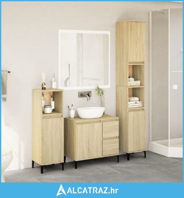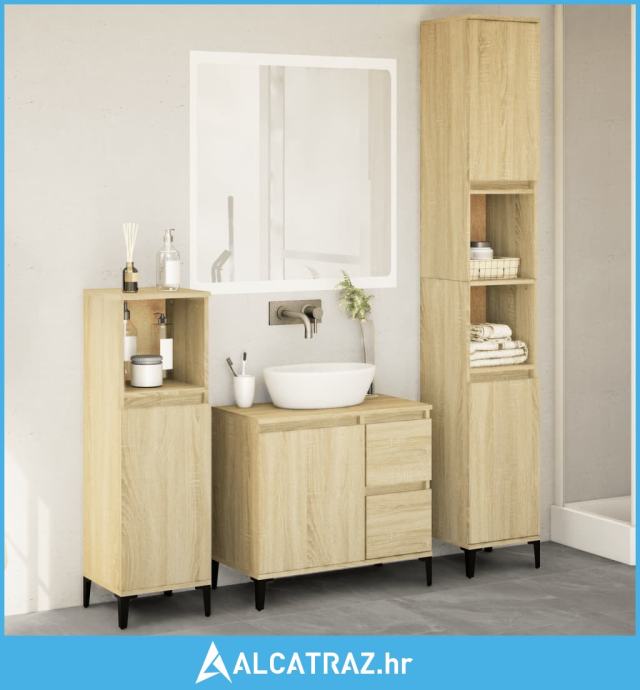 3-dijelni set kupaonskog namještaja boja hrasta sonome drveni - NOVO