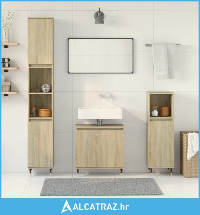3-dijelni set kupaonskog namještaja boja hrasta sonome drveni - NOVO