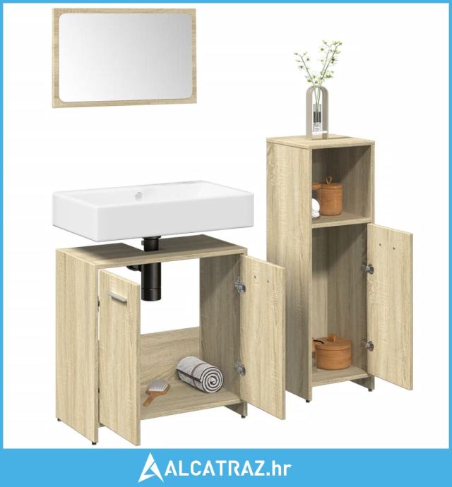 3-dijelni set kupaonskog namještaja boja hrasta sonome drveni - NOVO