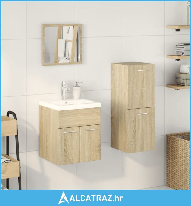 3-dijelni set kupaonskog namještaja boja hrasta sonome drveni - NOVO