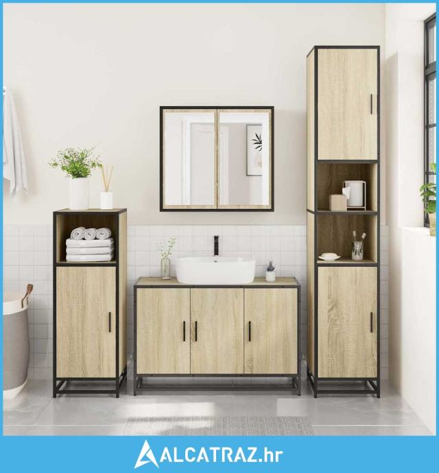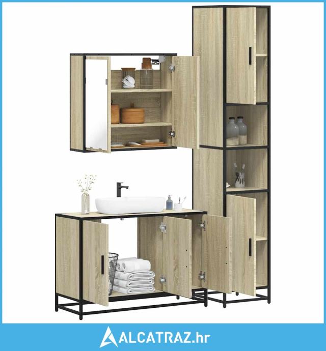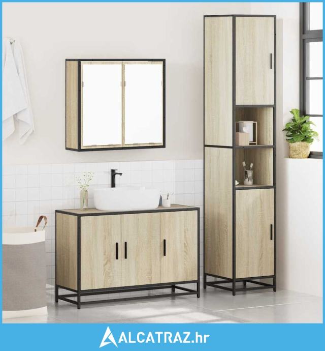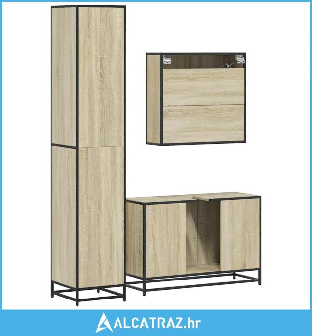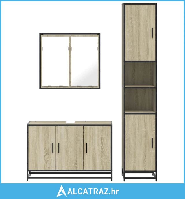 3-dijelni set kupaonskog namještaja boja hrasta sonome drveni - NOVO